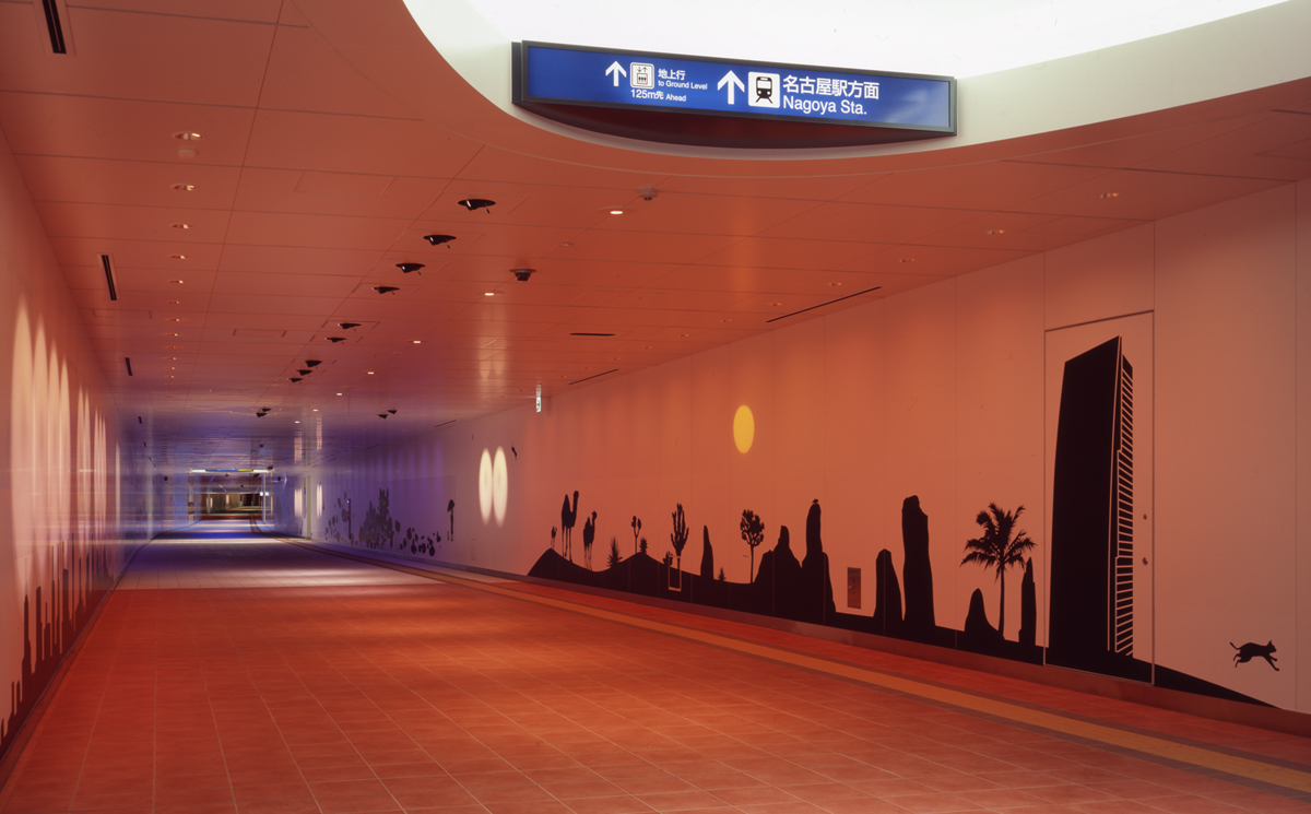 Photos by Hirofumi Tani 名古屋の超高層オフィスタワー・ルーセントタワーと名古屋駅を結ぶ300mの直通地下道ルーセントアベニューの空間演出。