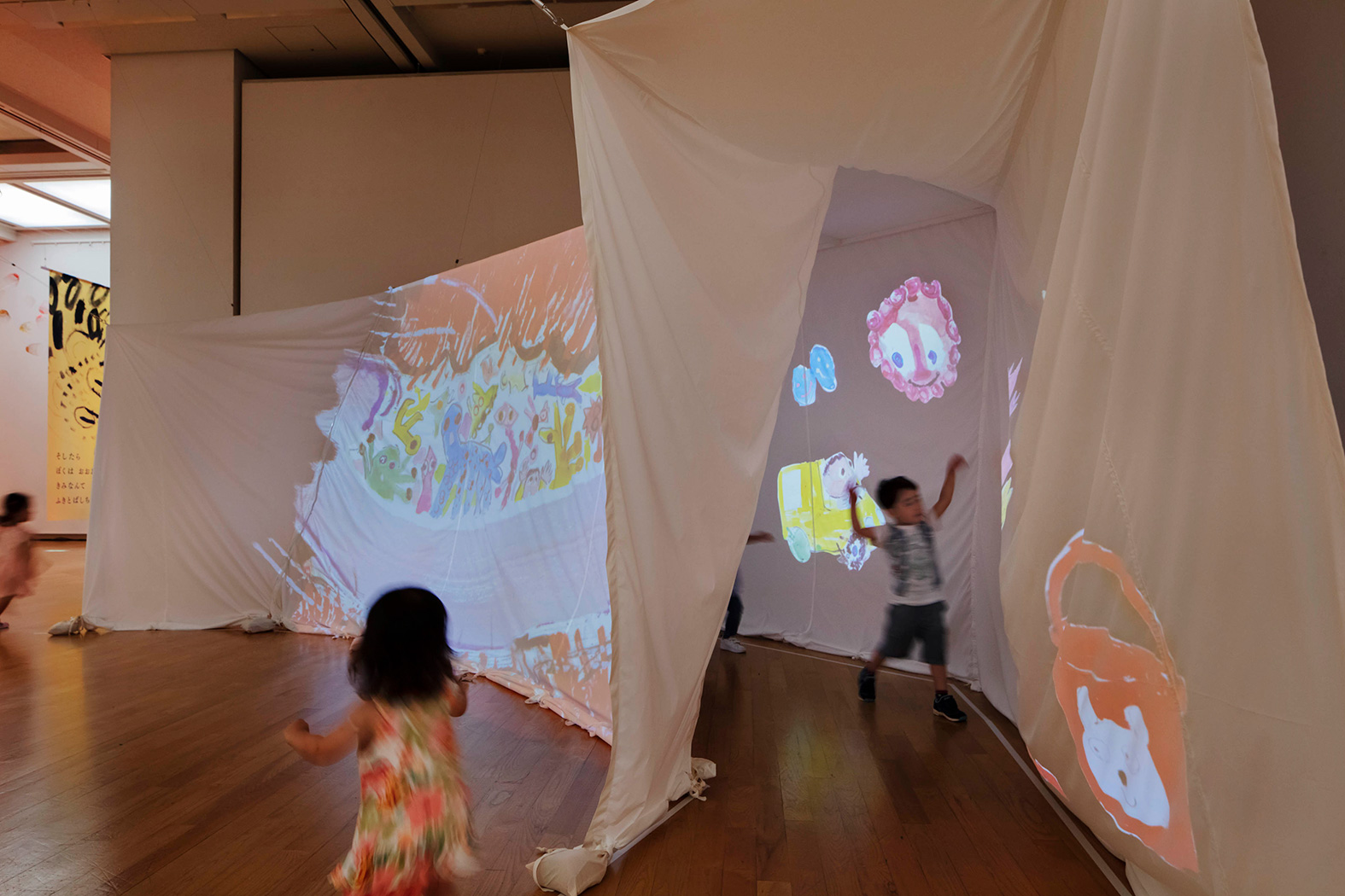 Photo: Fuminari Yoshitsugu 福岡アジア美術館で毎年夏休みに開催されている「おいでよ!絵本ミュージアム」。会場・展示構成を担当するトラフ建築設計事務所とコラボレーションし、3つのインスタレーションを制作しました。